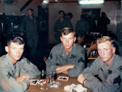 3 NCO's at Pleiku, from left to right SGT Larry Arrowood, SGT Robert Cope, and SGT Carl Scholl "Courtesy of Carl and Nancy Scholl" | ||||