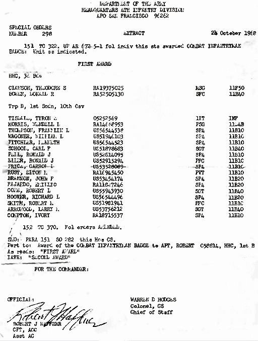 Blues CIB orders "Courtesy of Carl and Nancy Scholl" |