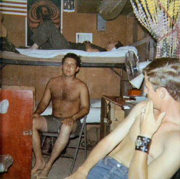 Adams (Chicken Hawk) in bed, Sipple (Bear) in chair and Chuck Eaton in foreground "Courtesy of Chuck Eaton" | |||