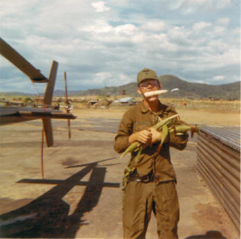 | Dropping a thermite grenade on an NVA hootch | The trick to picking corn from a helicopter is pushing the ear down to break it loose. If you just pull on it, all you do is drag the helicopter down. | |||